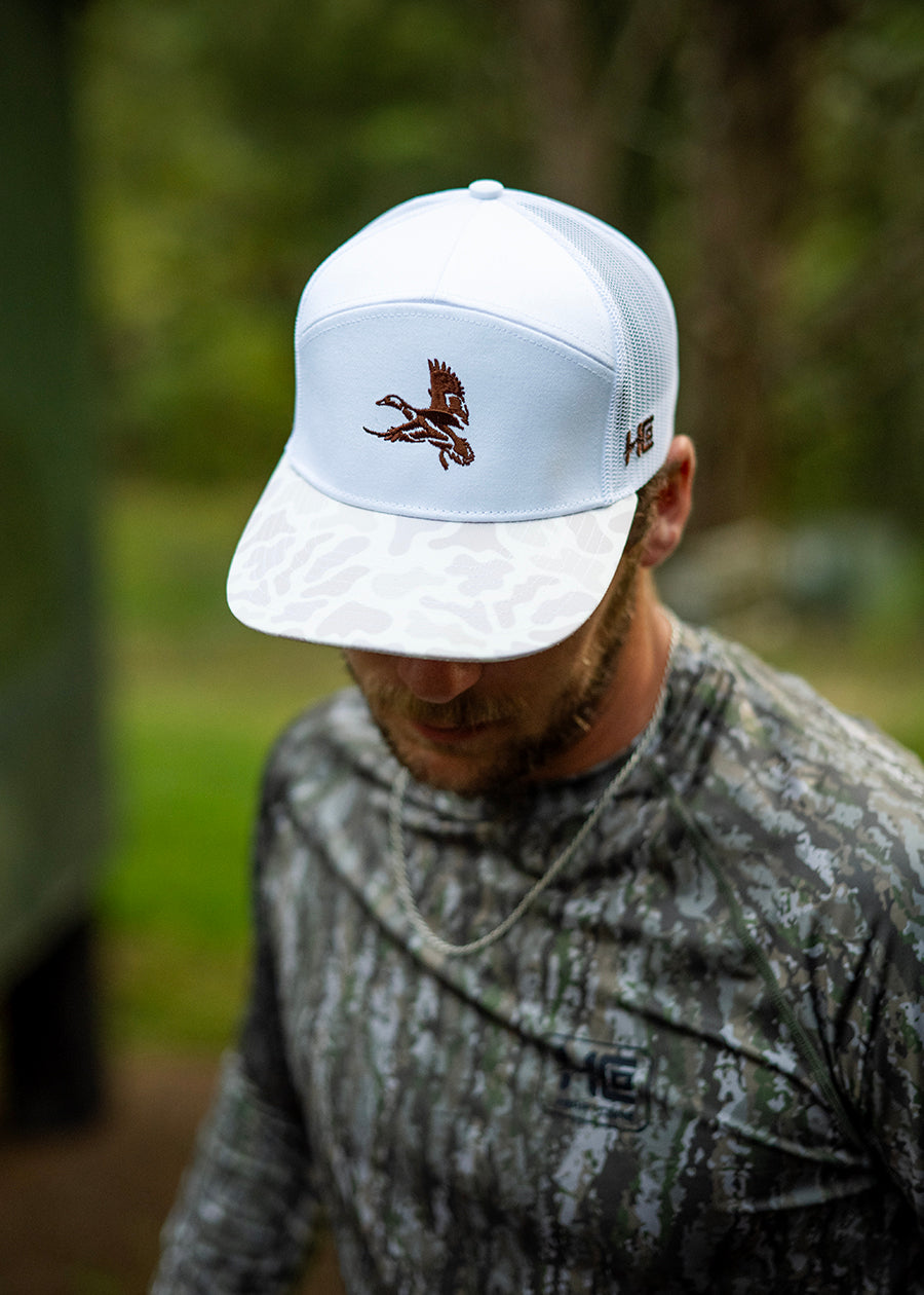 White Duck Camo 7 Panel Hat