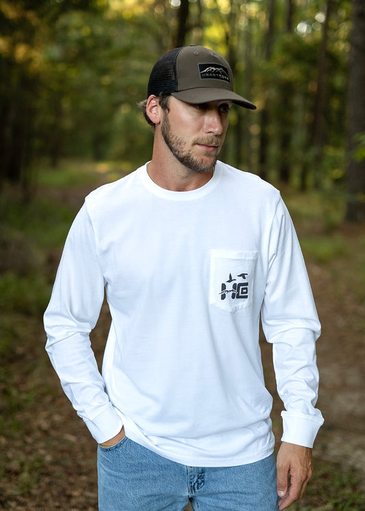 Long Sleeve Pocket Duck Tee - White